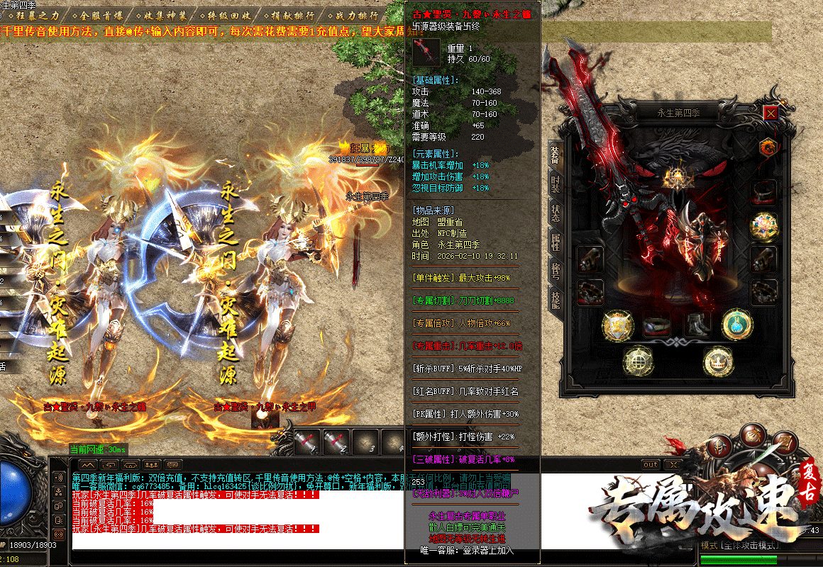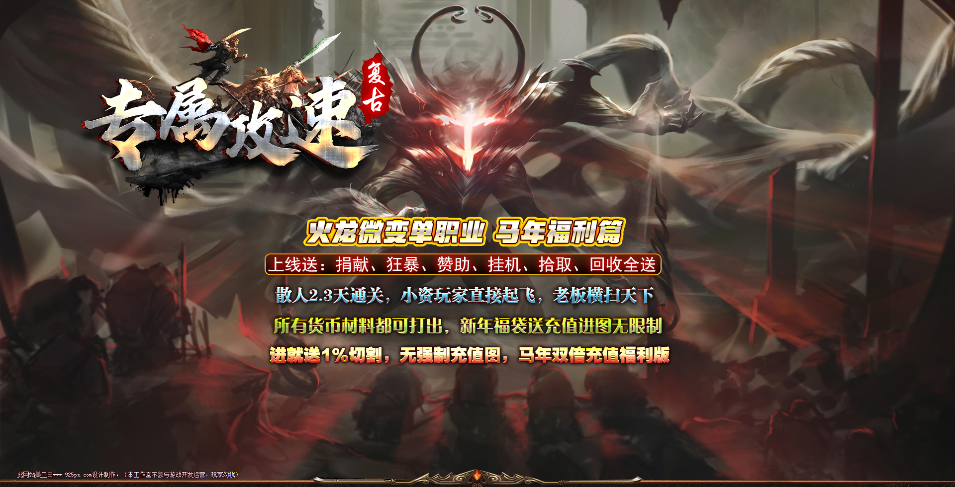游戏特色:本服玩法多,快速成型服,低消费,散人2.3通关,小资直接起飞,老板横扫全服