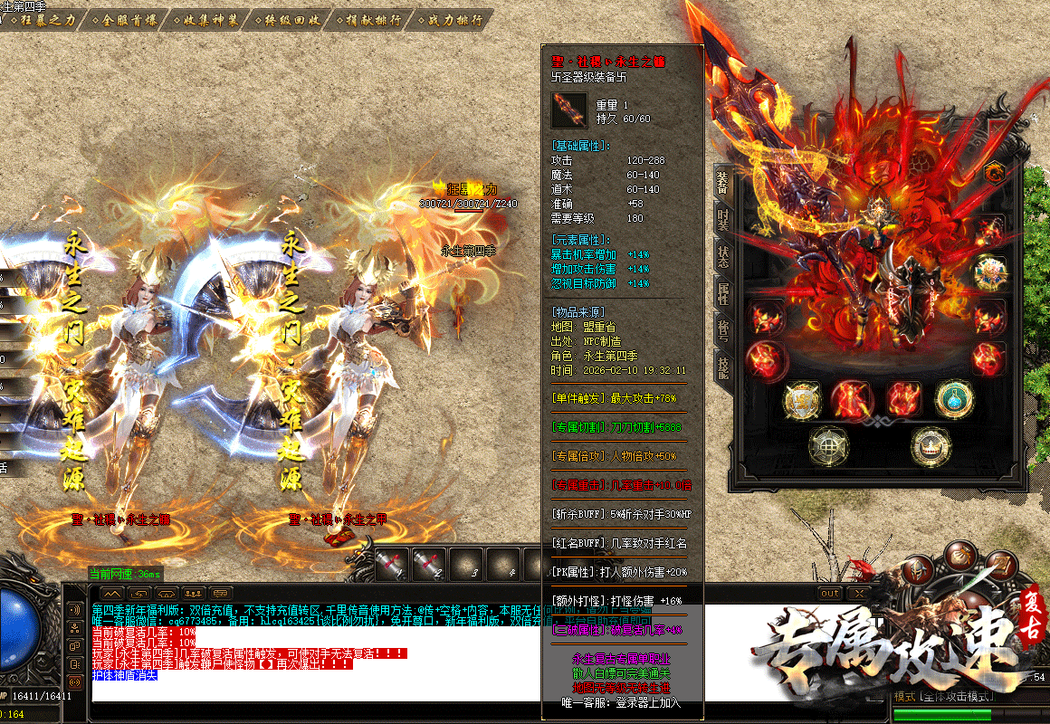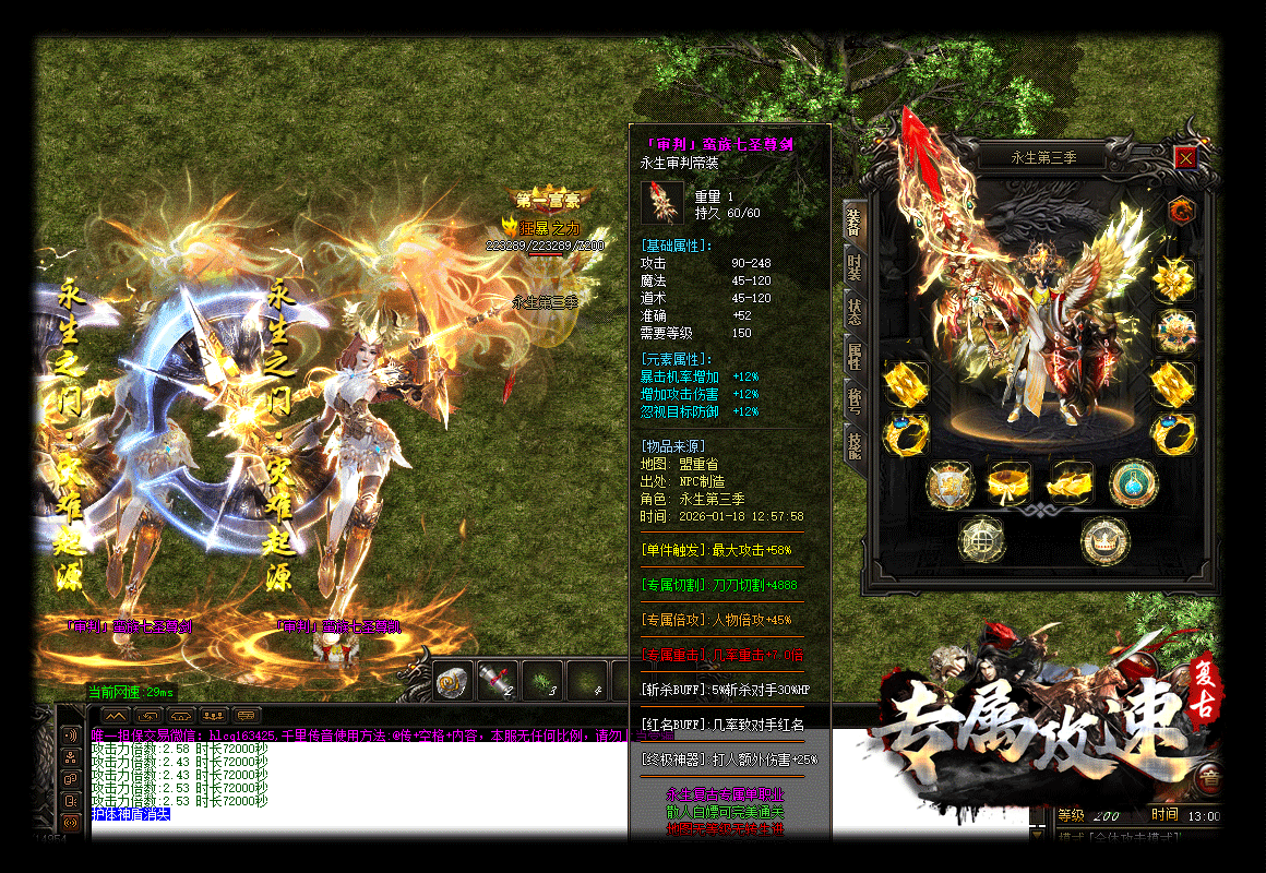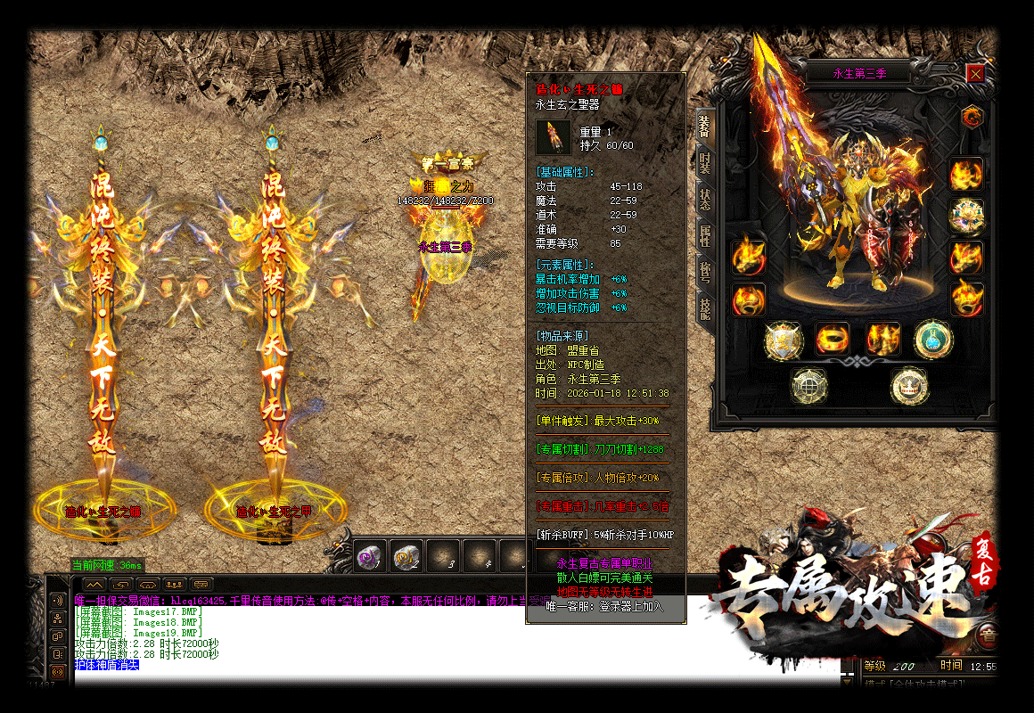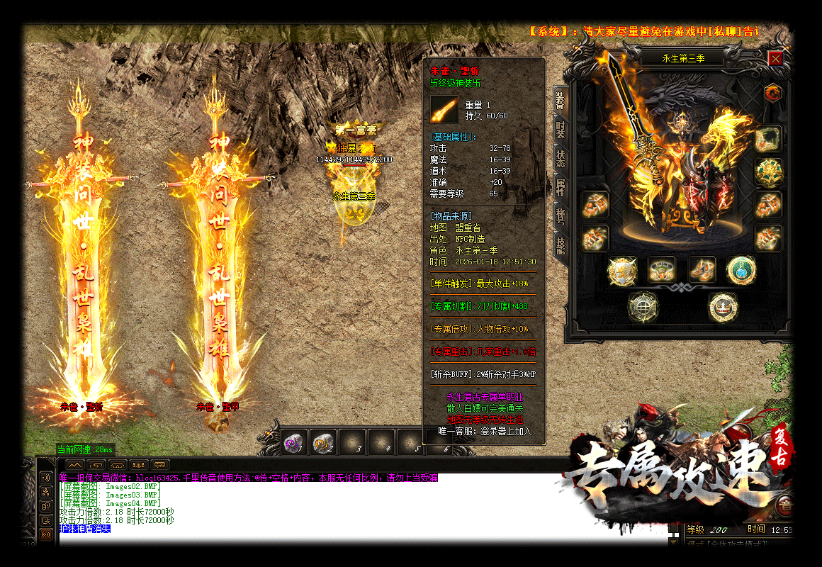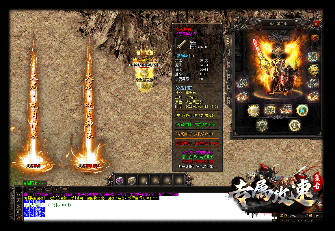 装备等级:火龙-朱雀-修罗-封天-造化-元始-始祖-通天-混沌-审判-灾难-九劫-社稷-圣贤等