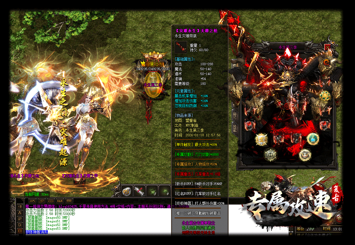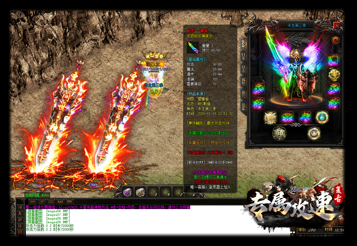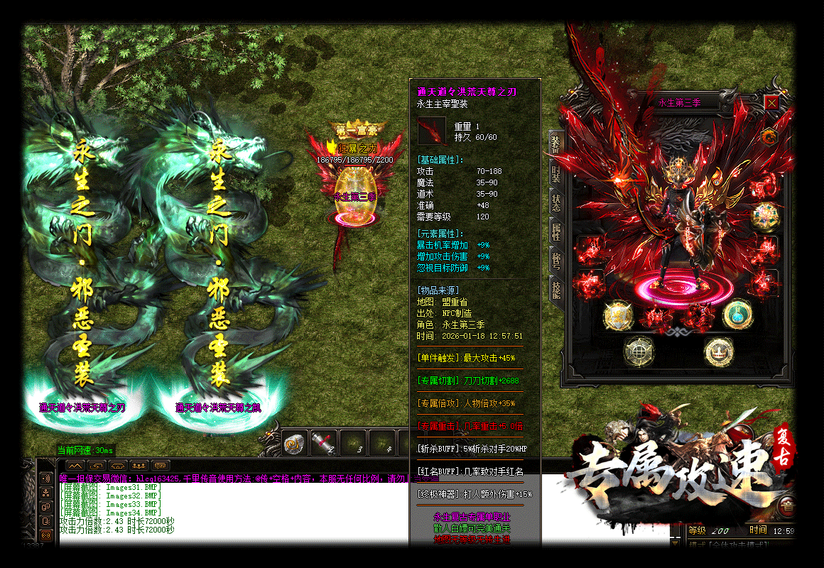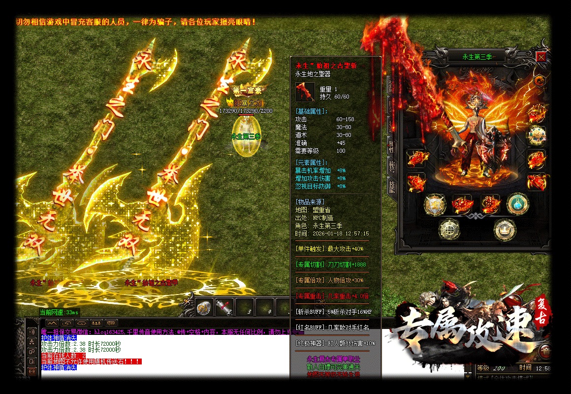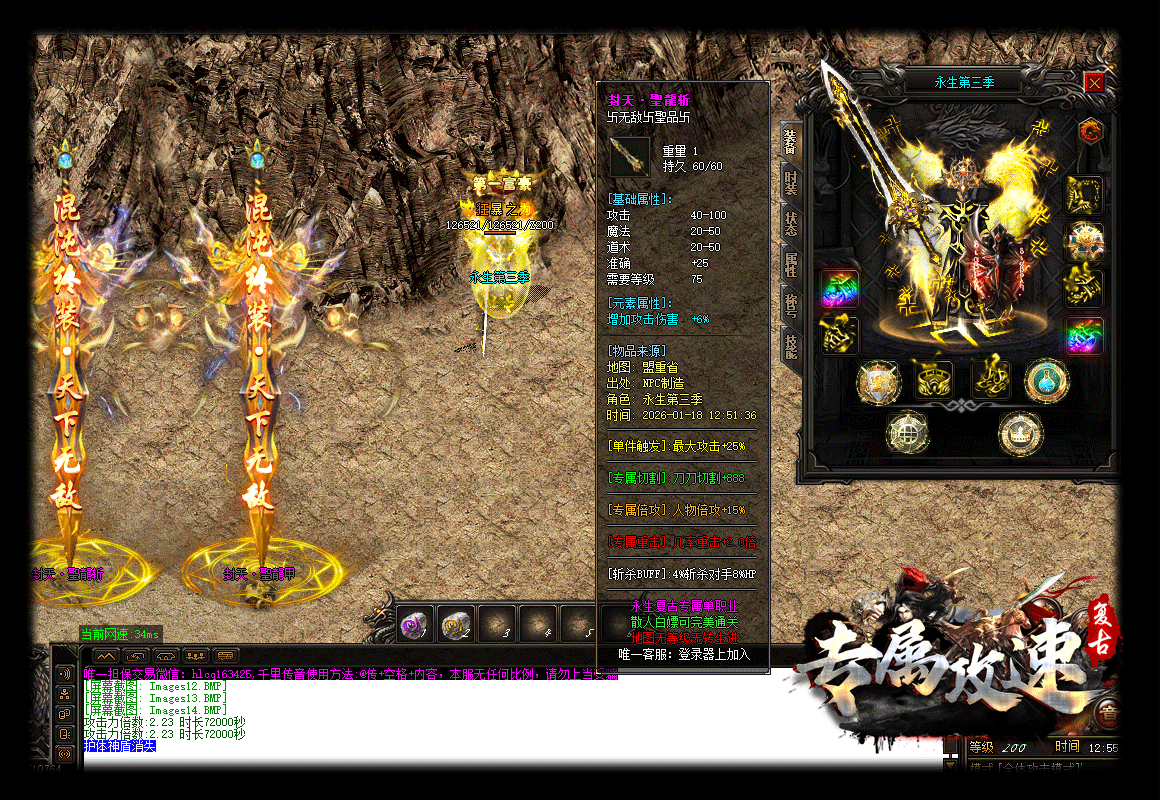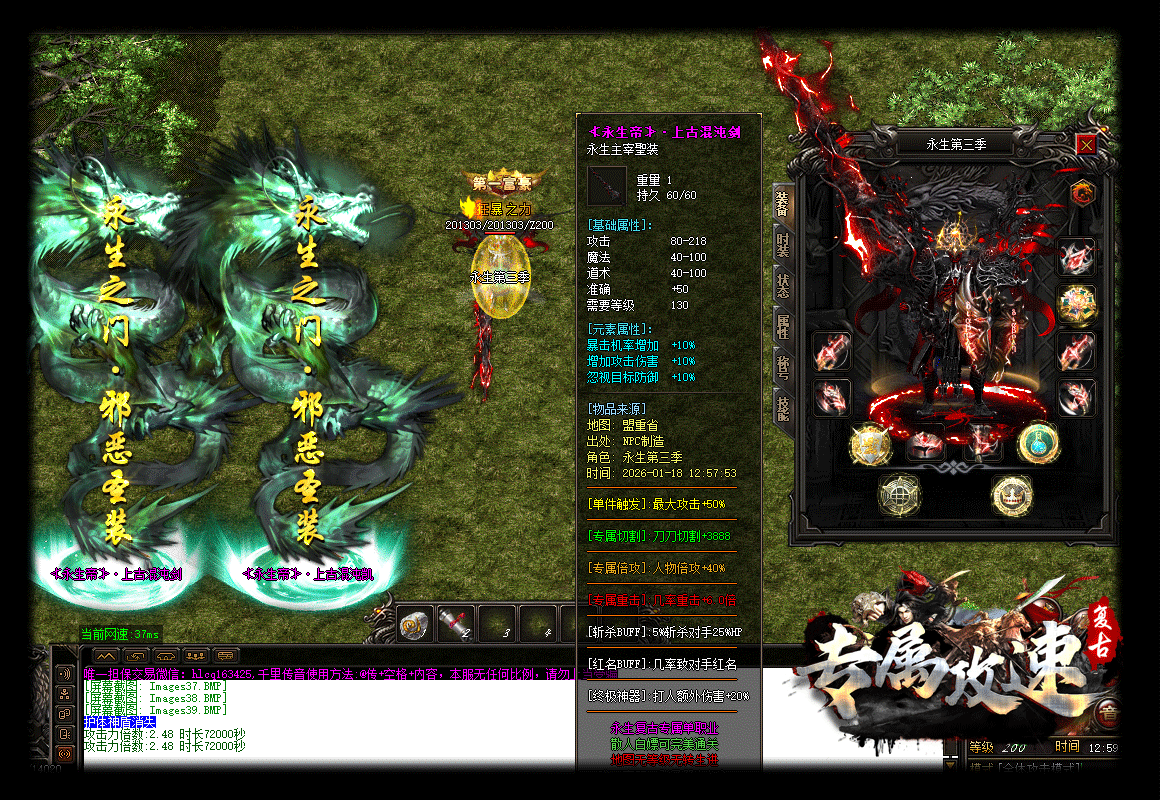 装备等级:火龙-朱雀-修罗-封天-造化-元始-始祖-通天-混沌-审判-灾难-九劫-社稷-圣贤等